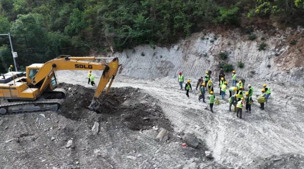 本次演練情景設計模擬安康市出現(xiàn)系統(tǒng)性、大范圍強降水過程,中小河流洪水暴漲、山洪地質災害險情加重,旬陽市銀聯(lián)礦業(yè)有限公司關子溝尾礦庫值班人員正在對尾礦庫安全狀況進行巡查,發(fā)現(xiàn)關子溝河因持續(xù)強降雨導致河水水位暴漲,現(xiàn)有的排洪隧洞無法滿足洪水外排,致使隧洞進水口附近水位急速上升,臨近最高警戒水位,情況十分緊急。